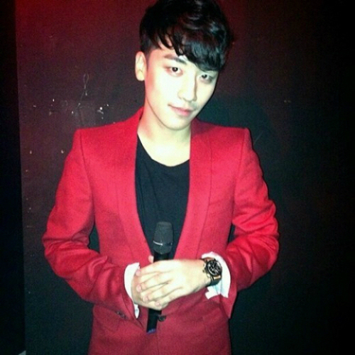 사진 속에는 빨간색 재킷에 검은색 셔츠를 매치한 패션을 선보이고 있는 승리가 마이크를 손에 쥔 채 사진 찍기에 여념이 없는 모습이다.