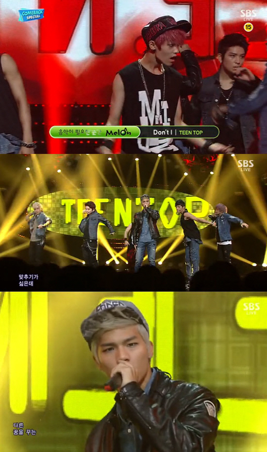 그룹 틴탑이 신곡 'Don't I'로 SBS '인기가요' 오프닝 무대를 꾸몄다.