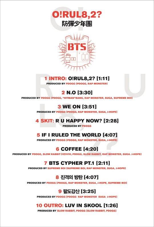 11일 발매될 'O!RUL8,2?'에는 인트로와 아웃트로를 포함해 총 10개의 트랙이 수록돼 있다.