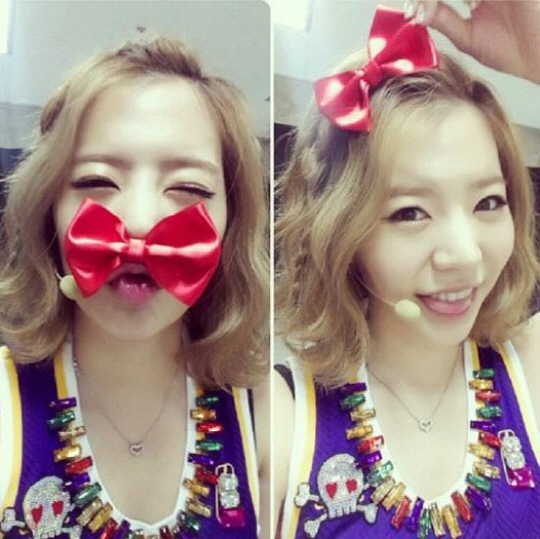 공개된 사진 속 써니는 빨간 리본을 이용해 다양한 포즈를 취하고 있는 모습이다. 빨간 리본을 인중에 두고 상큼한 매력을 과시하는가 하면, 머리에 두고 혀를 살짝 내미는 사랑스러운 포즈로 공연장을 찾아준 팬들에게 고마운 마음을 표현하고 있다.