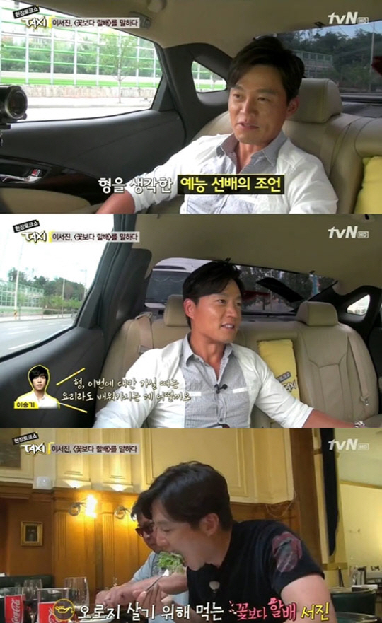 지난 2일 방송된 tvN '현장토크쇼 택시'에 출연한 이서진은 "tvN '꽃보다 할배' 두 번째 여행은 이승기의 조언을 얻었다"고 밝혔다.