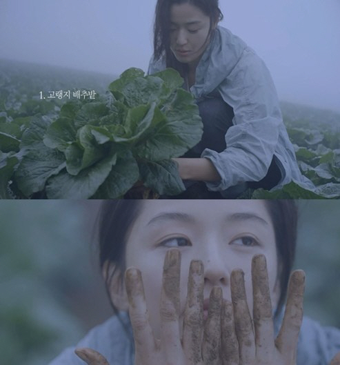 공개된 영상에서 전지현은 "처음 담그는 김치라 재료부터 욕심이 납니다. 잘해보고 싶다"라는 말과 함께 손과 얼굴에 흙을 묻히며 좋은 배추를 고르는 모습이 담겨있다.