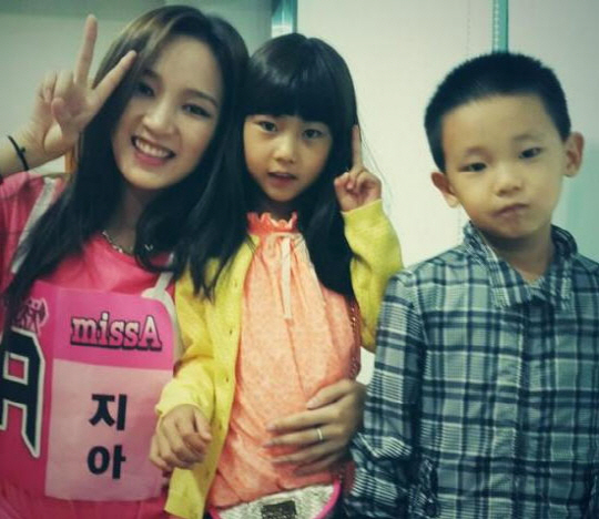 공개한 사진 속 지아는 송지아와 지욱 남매와 함께 브이를 그리고 있다. 이는 3일 고양종합체육관에서 진행된 MBC 추석특집 '아이돌스타 육상 양궁 풋살 선수권대회(이하 '아육대')' 녹화를 구경 온 송지아 남매가 대기실에 있는 지아와 만난 것으로 보인다.