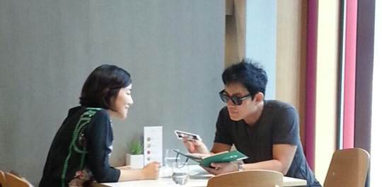 공개된 사진에는 결혼 3년 차인 이범수, 이윤진 부부가 서로 마주보고 앉아 다정스러운 눈길로 행복한 미소를 짓고 있다.