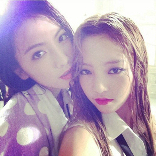 사진 속 구하라와 강지영은 물에 흠뻑 젖은 모습으로 사진 촬영에 여념이 없는 모습이다. 강지영은 큰 눈와 브이라인 턱선을 과시하며 카메라를 향해 뇌쇄적인 눈빛을 선보이고 있으며, 새빨간 립스틱을 바른 구하라는 거슴츠레한 눈에 요염한 눈빛으로 섹시미를 뽐내고 있어 남성 팬들의 마음을 흔들었다.