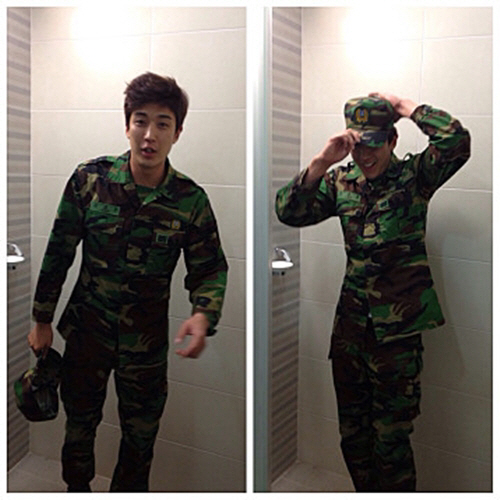 공개된 사진 속 강경준은 군복은 입은 모습으로 카메라에 포착됐으며, 특히 급하게 모자로 가리며 부끄러워하는 모습이 눈길을 끈다.