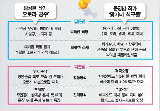 문영남 작가와 임성한 작가가 다시 안방극장을 사로잡고 있다. 동시간대 맞대결을 펼치고 있는 것은 아니지만 지난 달 31일부터 문 작가의 KBS2 주말극 '왕가네 식구들'이 전파를 타며 임 작가와 같은 시기에 브라운관에 작품을 선보이고 있다. 이는 꽤 관심있는 장면임에 틀림없다. 한국 드라마 작가들 가운데 1세대 김수현 작가 이후 가장 두각을 나타낸 작가가 바로 이들이기 때문이다. 하지만 이들은 늘 논란을 몰고다니는 작가들이기도 하다.