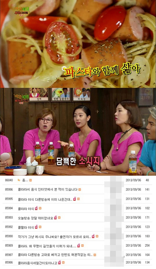 클라라가 5일 방송된 KBS2 '해피투게더 시즌3'에서 선보인 소시지파스타가 레시피 도용 논란에 휩싸였다.