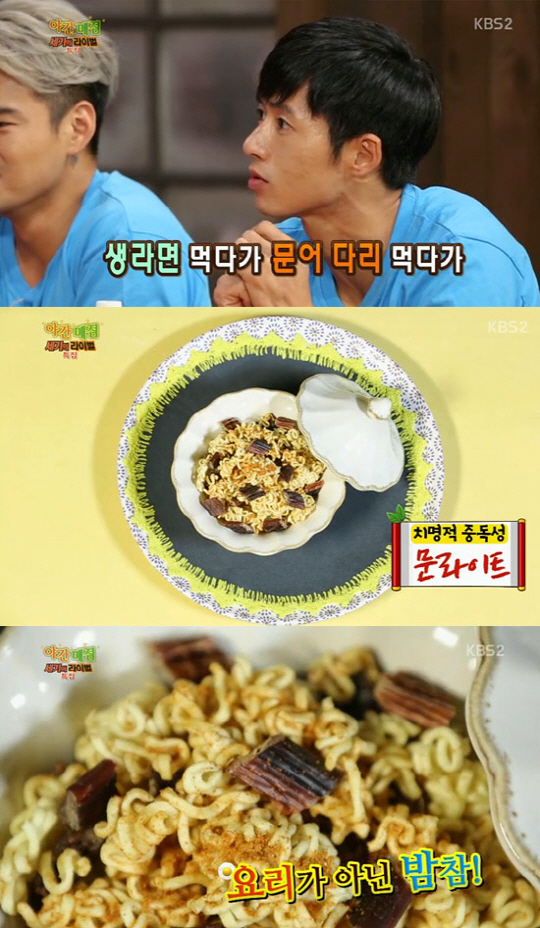 이날 야간매점에서 오종혁은 생라면과 문어 다리를 섞어 만든 초간단 레시피 '문라이트'를 선보였다.