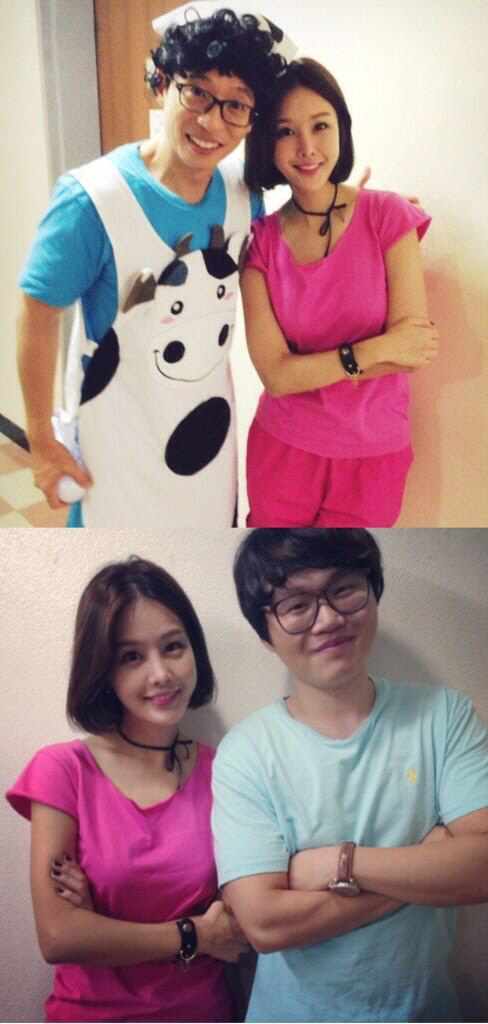 박은지는 6일 자신의 트위터에 "해피투게더~ 즐거운 시간이었어요. 감사해요"라는 글과 함께 두 장의 사진을 게재했다.