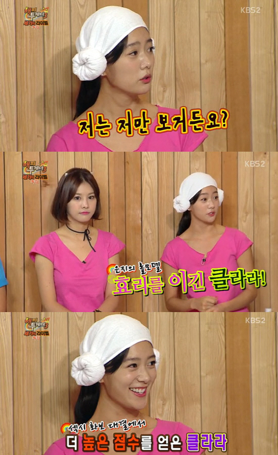 지난 5일 방송된 KBS 2TV '해피투게더3'에는 '세기의 라이벌' 특집으로 '섹시 라이벌' 클라라와 박은지, '해병대 라이벌' 이정과 오종혁이 출연해 입담을 자랑했다.