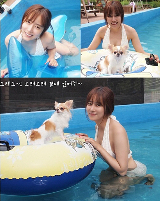 배우 최송현이 애견 펜션 물놀이 인증샷을 공개해 화제다.