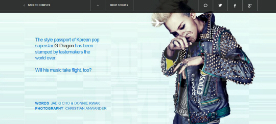 '콤플렉스(COMPLEX)'는 11일 자로 지드래곤을 '세계적으로 유명한 아시아 팝스타'라고 소개하며 그의 음악 세계와 패션 등을 조명한 인터뷰를 공개했다.