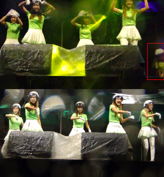 엘린은 몸이 공중에 붕 떴다 떨어질 정도로 심하게 미끄러졌지만, 아픈 내색 없이 부끄러운 웃음과 함께 곧바로 일어나 끝까지 무대를 무사히 소화했다.