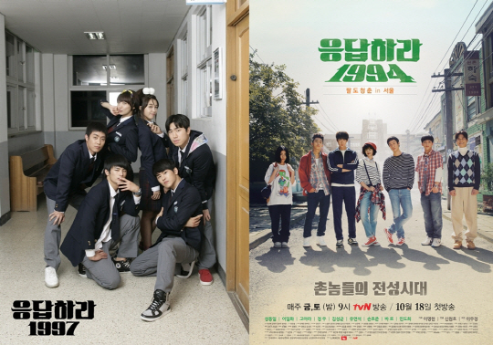 한편, 메인 단체컷만 봐도 '응답하라 1997'과 '응답하라 1994'의 다른 부분이 눈에 단번에 들어온다. '응답하라 1997'이 개성만점 고등학생 여섯 남녀의 이야기였던 만큼 교복차림과 장난기 넘치는 표정으로 시선을 잡았다면, '응답하라 1994'는 팔도에서 올라온 청춘들의 캠퍼스 패션과 패기 넘치는 표정으로 눈길을 끌고 있는 것.