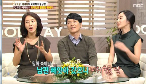 배우 김희정이 영화 '짓'에서 자신의 남편 서태화와 바람을 피우는 역을 맡은 후배 서은아가 "실제로 미워진다"고 말해 폭소를 자아냈다.