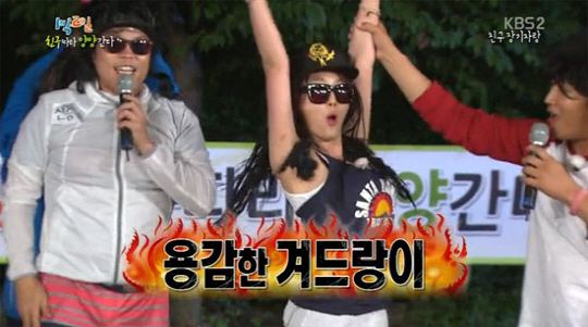 강예원은 차태현이 "우리의 용감함을 보여지"란 말에 과감히 두 팔을 들어 올려 겨드랑이 털을 선보이는 개그로 눈길을 끌었다.