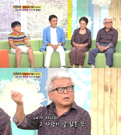 이에 최준용 아버지는 "그런 말 많이 듣는데 기분이 나쁘다"며 "내가 닮은 게 아니라 그 사람이 날 닮은 것'이라고 말해 웃음을 자아냈다.