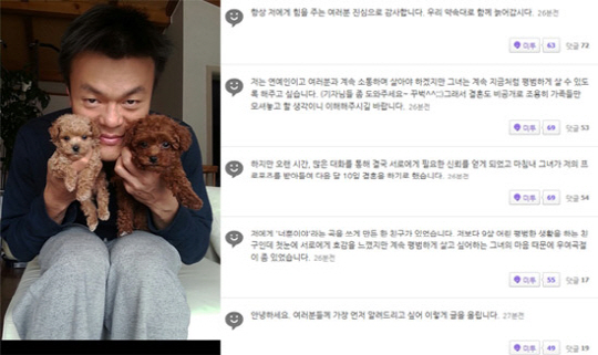 특히 박진영은 "그래서 결혼도 비공개로 조용히 가족들만 모셔놓고 할 생각이니 이해해주시길 바랍니다. 항상 저에게 힘을 주는 여러분 진심으로 감사합니다. 우리 약속대로 함께 늙어갑시다"라며 감사의 메시지를 전했다.