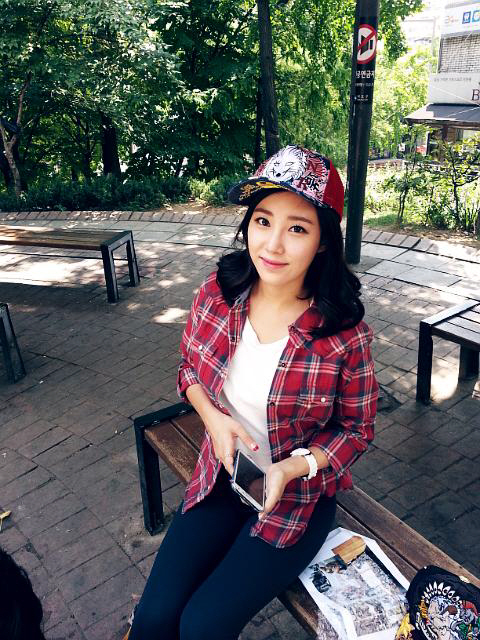 살짝 웨이브진 머리가 경쾌함을 전달하고 있다. 안에 받쳐입은 브이넥 화이트 셔츠도 편안해 보이는 차림이다.