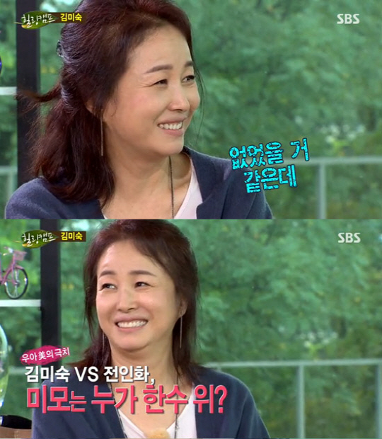 이에 김미숙은 "나와 같은 또래들이 많다"며 "성이 다른 이미숙씨도 있고, 전인화씨도 있다"며 자신의 라이벌로 이들을 꼽았다. 그러자 MC성유리는 김미숙을 향해 "솔직히 전인화씨와 비교해 두 분 중 누가 더 미모가 우위에 있다고 생각을 하느냐"고 질문을 던졌다.