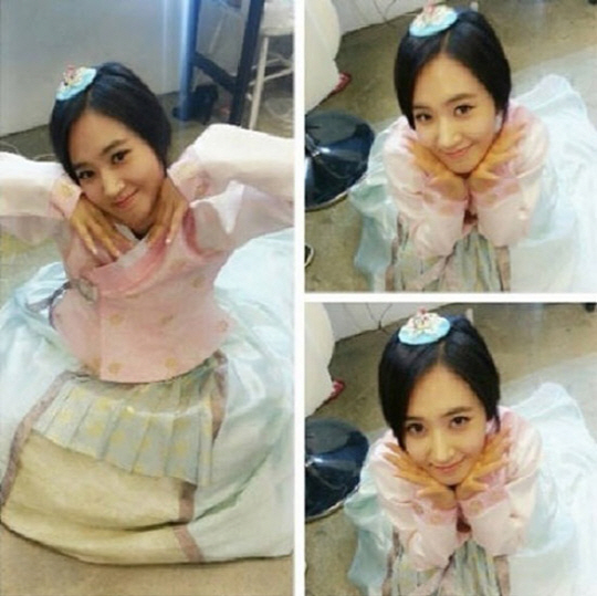 걸그룹 소녀시대 멤버 유리가 한복을 입고 꽃받침 포즈를 선보였다.