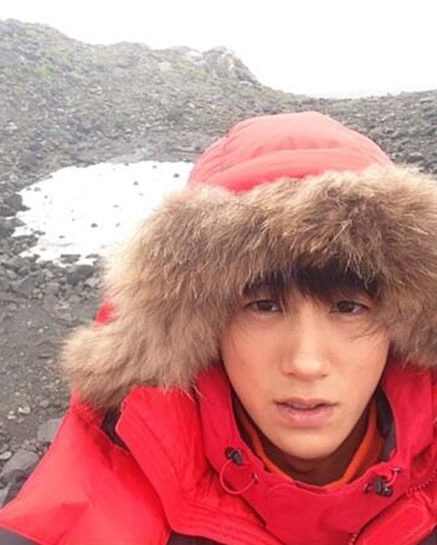사진 속 박형식은 털모자가 달린 두터운 패딩점퍼를 입고 까칠한 얼굴로 메마른 산 앞에서 카메라를 응시하고 있다. 아웃도어 광고 촬영 중 팬들에게 추석 인사를 전하기 위해 직접 로키산맥을 배경으로 셀카를 찍었다.