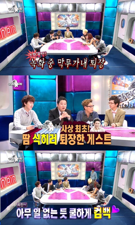 김민종 퇴장 모습에 네티즌들은 "김민종 퇴장, 역시 관록", "김민종 퇴장, 라스에서는 웃음으로 이해되는 돌발행동", "김민종 퇴장, 큰오빠의 위엄", "김민종 퇴장, 땀 식히러 퇴장한 게스트 사상최초 자막이 더 웃겨" 등 반응을 보이고 있다.<스포츠조선닷컴>