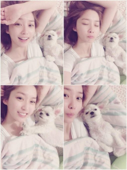 공개한 사진에는 윤 아나운서가 강아지와 함께 침대에 누워 있는 모습이다. 무결점 피부를 자랑하는 윤 아나운서는 노메이크업에도 청순한 미모를 뽐내고 있으며, '아나'라고 소개한 강아지와 귀여운 표정을 지어 보이고 있어 남성팬들의 마음을 설레게 하고 있다.