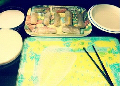 신봉선은 21일 자신의 트위터에 "해피투게더 야간매점의 지성잡쌈! 집에서 만들어 보았네요^^ 한번씩 만들어 보게요~^^ 잡채와 라이스페이퍼만 있음 끝!"이라는 글과 함께 한 장의 사진을 게재했다.