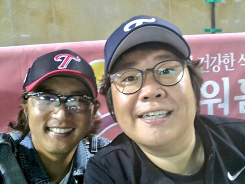 개그맨 류담이 배우 안재욱과 야구관람 인증샷을 공개해 화제를 모았다.