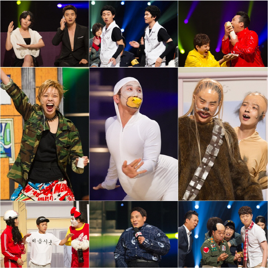 방송을 앞두고 공개된 현장 사진에는 바야바 분장으로 명불허전 분장개그를 뽐내는 '분장실의 강선생님' 팀의 강유미, 트렌드를 활용한 개그의 귀재답게 크레용팝으로 변신한 '게임폐인' 팀의 이용진, 휴식기를 마치고 '코빅' 복귀를 알린 유세윤이 '기막힌 서커스'에서 미운오리새끼로 변신한 모습이 담겨 있다. 이 밖에도 개그계 큰형님인 박준형이 왕년의 무 갈기 개그를 다시 선보이는 장면, 개그듀오 '그룹 싸스' 정만호-윤성한이 다시 한 번 뭉친 모습, '형님뉴스' 팀에서 구성진 사투리 연기를 뽐냈던 김재우의 활약도 시선을 사로잡는다.