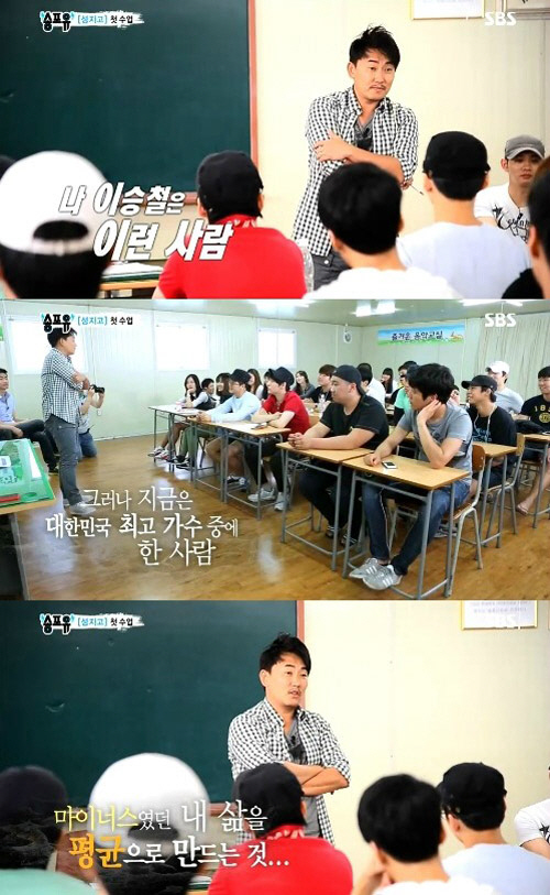 그는 "고등학교 졸업할 때 전과 9범이었다. 대마초 두 번 피워 감옥 두 번 갔다 오고, 한 번의 이혼도 했다. 하지만 지금은 대한민국 최고 가수 중 한 사람으로 살고 있다"고 털어놨다. 이어 "마이너스였던 내 삶을 평균으로 만드는 게 중요하다. 인생을 뒤집는 데 가장 중요한 것은 의지다"라며 "너희들의 재능을 내가 발견해줄 수 있다. 믿고 따라와 주면 된다"고 조언했다.