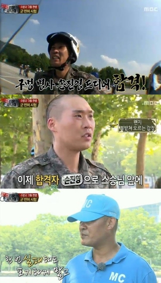 22일 방송된 MBC '일밤-진짜사나이'에서는 모터사이클 훈련 내내 미숙한 태도로 구멍병사의 존재감을 입증했던 손진영이 군면허를 취득하는 과정이 그려졌다.