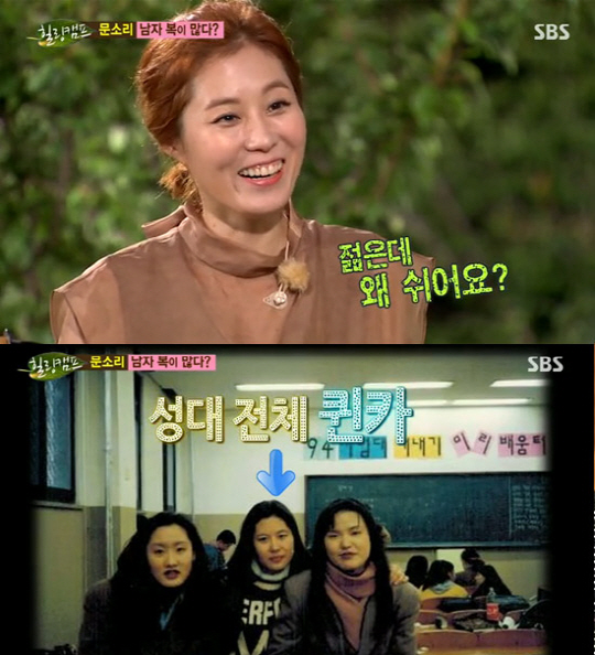 또 MC김제동은 문소리를 향해 "성대 연극반에서 퀸카였다고 소문이 났다"고 말을 건네자, 그는 "연극반에서만 퀸카였데요? 조사를 잘 못하셨네"라며 외모에 자신감을 드러내기도 했다. 이어 문소리의 대학시절 사진이 공개됐다. 사진 속 문소리는 긴 머리를 풀어헤친 채 화장기 없는 민낯에도 또렷한 이목구비를 과시, 친구들 사이에서도 유독 빛이 나는 외모를 뽐내고 있어 눈길을 끌었다.