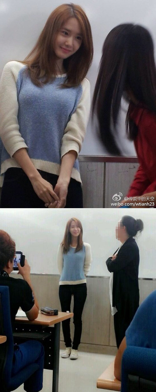 공개된 사진 속 윤아는 강의실에서 하늘빛 스웨터에 검은색 스키니진 입은 편안한 차림으로 서있는 모습.