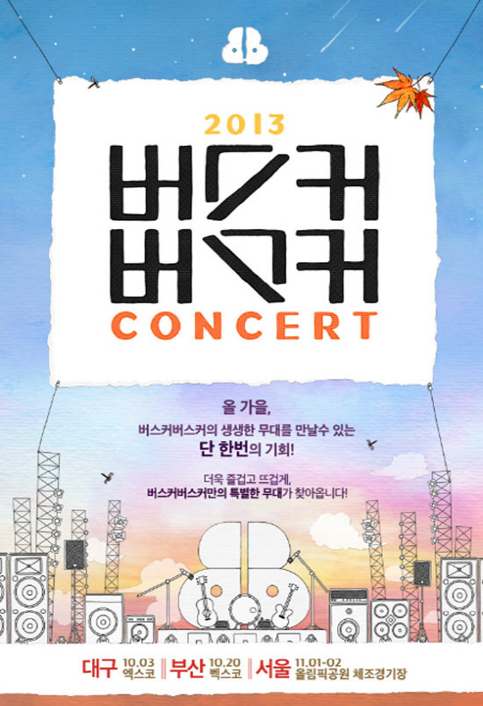 버스커버스커는 향후 방송활동이나 프로모션 없이 내달 3일 부산 벡스코 공연을 시작으로 오는 11월 1일과 2일 서울 방이동 올림픽공원 내 체조경기장에서 '2013 버스커버스커 콘서트'를 개최하며 팬들을 만난다.