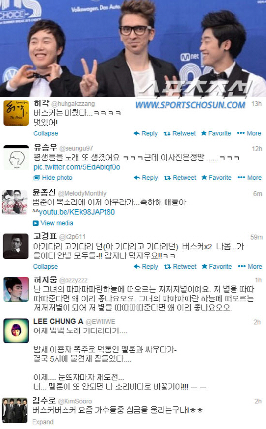 한편 순수한 팬으로 돌아간 배우들의 애찬도 다양하다. tvN '감자별'에서 활약을 예고한 배우 고경표는 "기다리고 기다리던 버스커버스커 나옴. 가을이다"라며 팬임을 자처했고, 최근 JTBC '마녀사냥'에서 화려한 입담을 자랑하는 문화평론가 허지웅은 버스커버스커의 타이틀곡 '처음엔 사랑이란 게' 가사를 나열해 보이기도 했다.