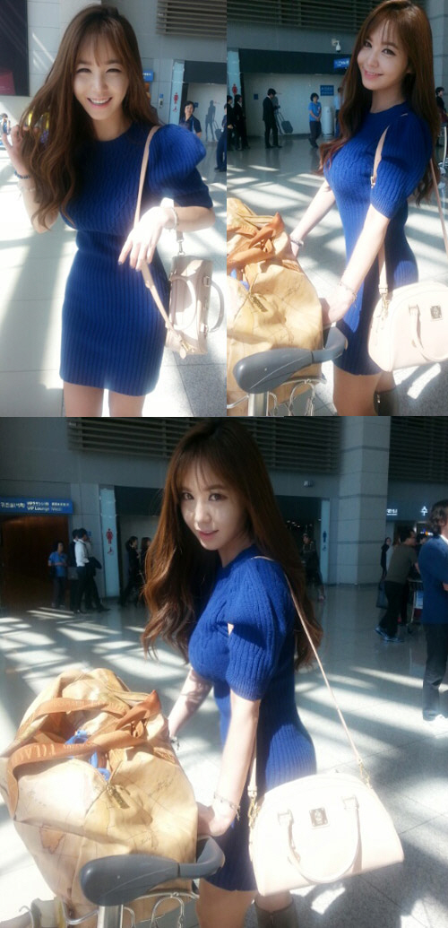 강예빈 공항패션 '몸에 쫙 붙는 니트 원피스' 아찔한 볼륨