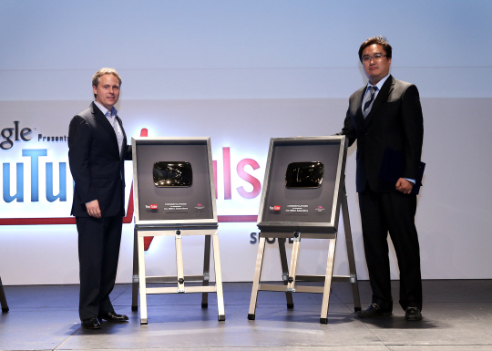 SM은 지난 25일 오후 3시, 서울 한남동 블루스퀘어에서 열린 YouTube Pulse 행사에서 SMTOWN 유튜브 공식 채널로 구독자 100만명을 넘는 채널에게 수여하는 'YouTube Partner Gold Play' 상을 수상했다.