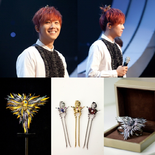 뿐만 아니라 그는 '엠카운트다운' 컴백 무대에서 진주 비녀 3개로 만든 독특한 헤어스타일을 선보였는데, 이는 미스코리아 왕관을 만드는 최고의 주얼리팀과의 콜라보로 제작된 작품이다.