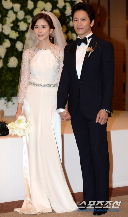 두 사람은 수많은 취재진들에 둘러싸여 뜨거운 플래시세례를 받으며 행복한 마음을 드러냈다. 특히 이날 이보영은 시스루 소재의 순백 웨딩드레스를 입고, 청순하면서도 특유의 단아한 매력을 발산하며 아름다운 신부의 모습을 자랑했다.