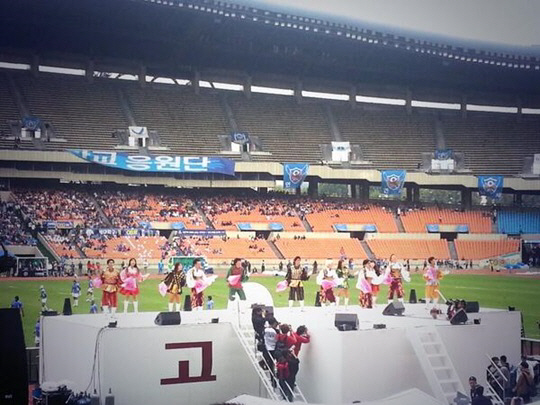 사진에는 고려대학교 응원을 맡은 유재석, 박명수, 정준하, 하하가 무대에서 열띤 응원을 펼치는 모습이 담겨 있다.