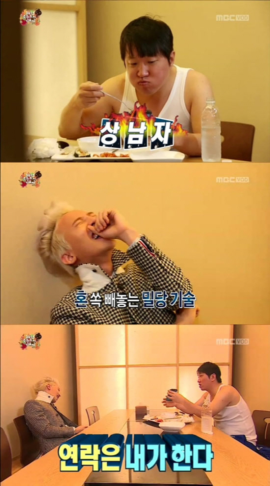 특히 지드래곤은 연락을 위해 정형돈과 전화번호를 교환하려 했지만, 정형돈은 "너무 노골적이다. 일곱 자리만 가르쳐주겠다"고 밀당을 시도 했다. 정형돈은 "나 쉬워보이는거 싫다"고 말한 후 자신의 핸드폰을 주며 "니 번호 찍어라. 형이 마음 동할 때 전화하겠다"고 말했다.