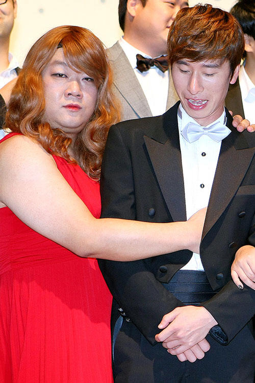 개그맨 유민상이 여장을 하고 양상국의 품 속에 손을 집어 넣은 모습이 도발적(?)이다.