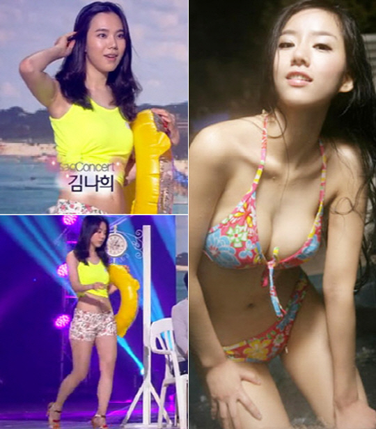 '개콘' 김나희는 지난달 8월 배꼽티에 핫팬츠를 입고 출연한 '개콘' 영상에서, '배우' 김나희는 과거 화보를 통해 아찔한 볼륨감을 과시하며 남성 팬들의 눈길을 확 사로잡는다.