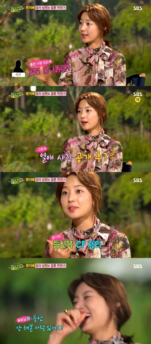 한지혜는 "이후 1년 정도 비공개 연애를 하고 있었는데 등산하는 사진이 찍히면서 열애설이 났다"고 과거를 회상했다.