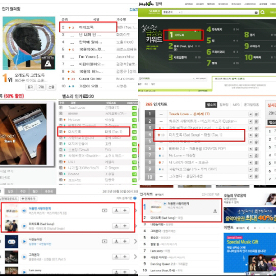 지난 16일 발표된 태원의 신곡 '미치도록(Sad song)'은 마이벨링, 벨소리365 등의 벨소리 차트의 상위권에 랭킹되며 뜨거운 관심을 입증했다.
