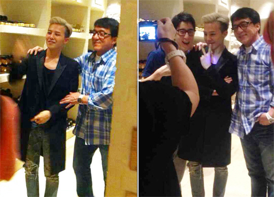 사진 속 지드래곤은 블랙 재킷에 찢어진 청바지를 입고 시크한 스타일을 연출했다. 그의 옆에는 캐주얼한 차림의 성룡과 그를 빼닮은 붕어빵 아들 방조명이 나란히 어깨동무하며 포즈를 취하고 있다.