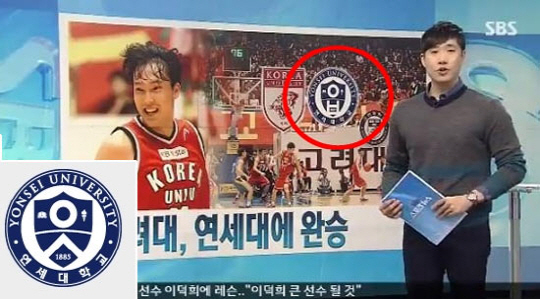 27일 방송된 SBS '스포츠 뉴스'에서는 연세대와 고려대 농구 정기전 결과가 보도됐다. 이날 방송에서 아나운서 뒤에 등장한 배경 이미지 속에는 연세대 마크가 '일베 로고'로 잘못 사용돼 물의를 빚었다.